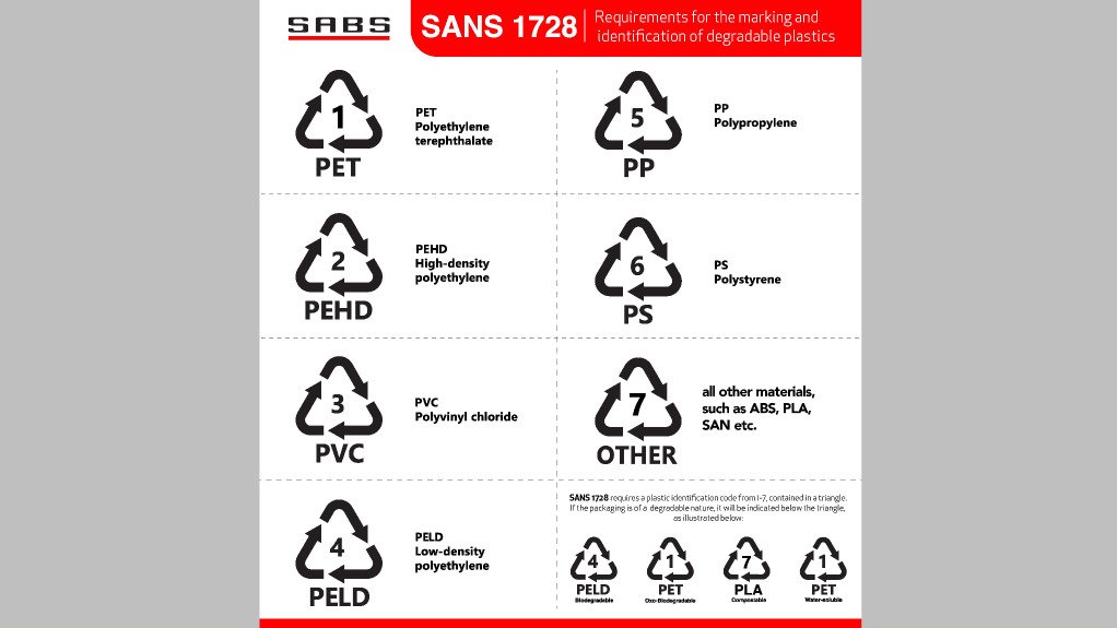 SABS has recently published South African National Standard (SANS) 1728: The requirements for the marking and identification of degradable plastics. Degradable plastics include but are not limited to biodegradable, compostable, oxo-biodegradable and water-soluble plastics. SANS 1728 advises consumers to recognise the correct markings and to be aware that any product that claims to have biodegradable plastic packaged, needs to be verified according to the standard, which is aligned to global requirements.