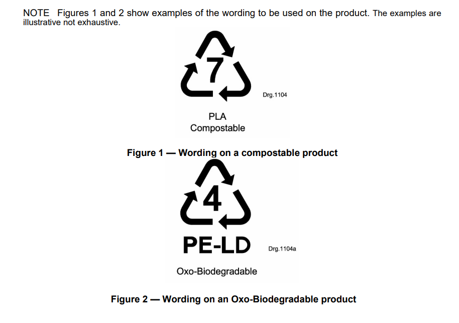 Should the plastic packaging be of a degradable nature, it will be indicated below the triangle, as illustrated below (extract from SANS 1728):